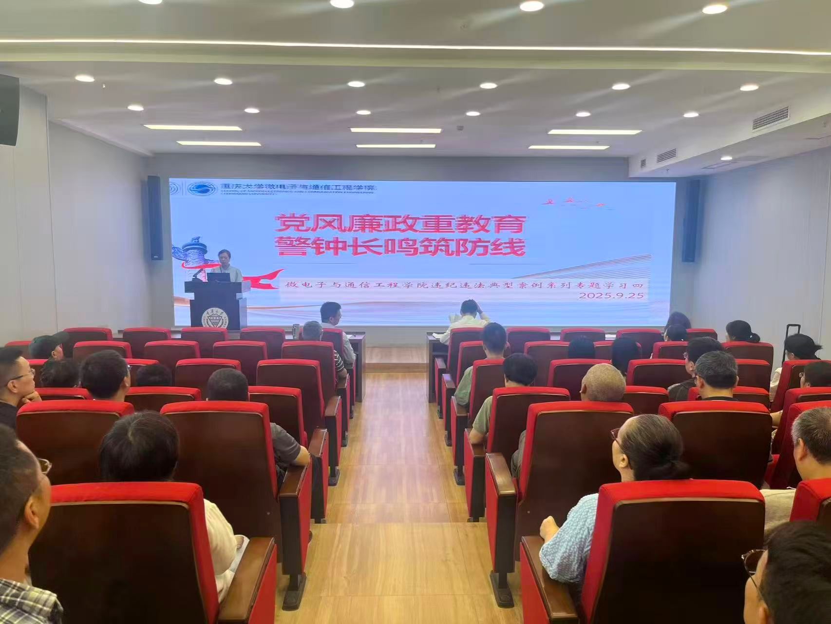 在2025年9月25日下午14:30在虎溪校区信息大楼623会议室,重庆大学微电子与通信工程学院面向全院教职工开展了“党风廉政重教育,警钟长鸣筑防线”的违纪违法典型案例系列专题四学习活动,由学院纪委书记余嘉领学。