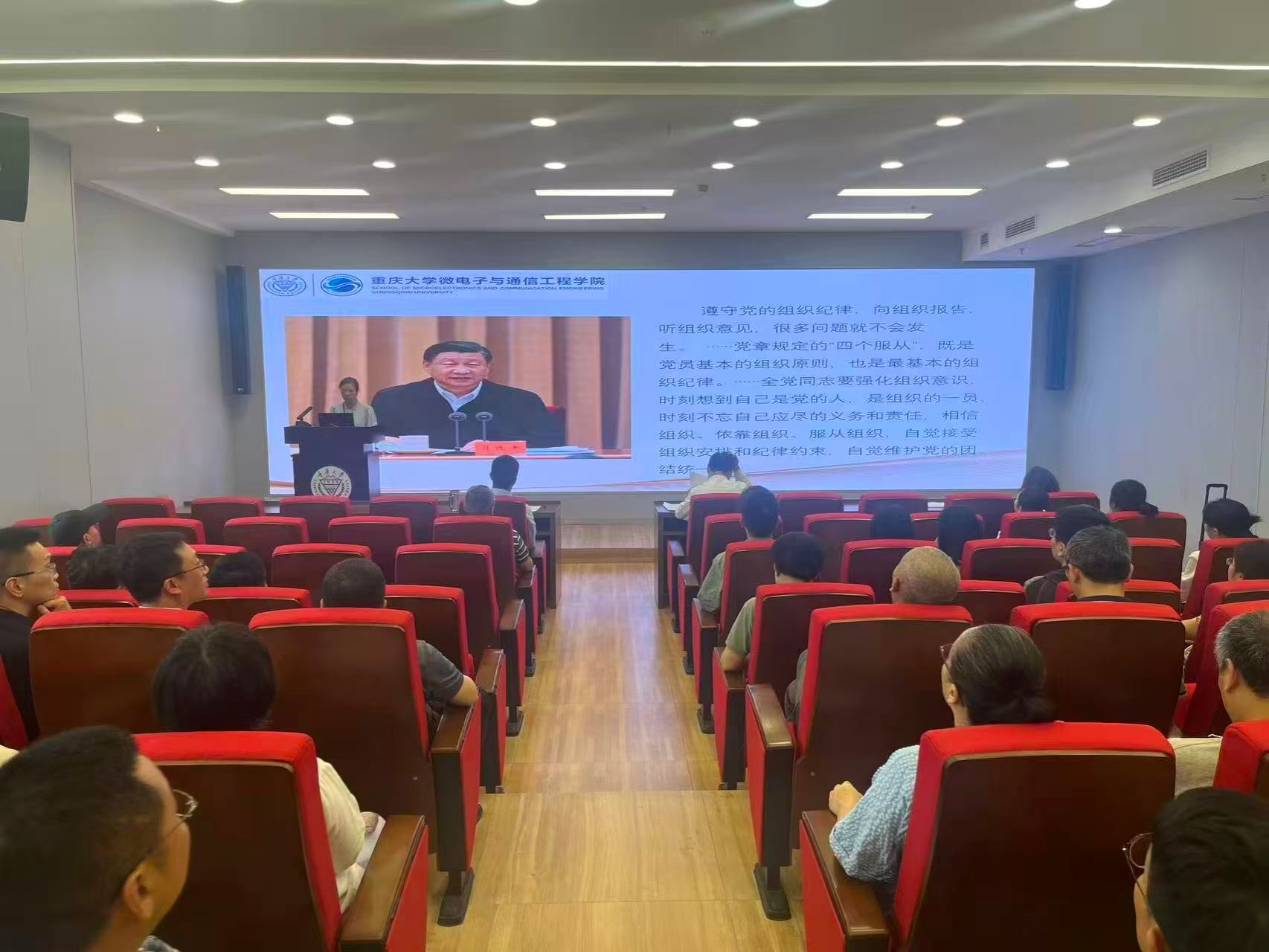 在2025年9月25日下午14:30在虎溪校区信息大楼623会议室,重庆大学微电子与通信工程学院面向全院教职工开展了“党风廉政重教育,警钟长鸣筑防线”的违纪违法典型案例系列专题四学习活动,由学院纪委书记余嘉领学。