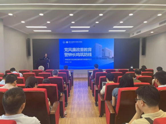 重庆大学微电子与通信工程学院于2025年7月10日下午14:30在虎溪校区信息大楼623会议室开展了主题为“党风廉政重教育,警钟长鸣筑防线”的违纪违法典型案例系列专题学习活动,本次学习活动是系列专题学习的第三次。此次学习由学院纪委书记余嘉领学,全院教职员工参加,主题是深入领会中央八项规定精神,并通过学习违反中央八项规定精神的典型案例,加强教职工的党风廉政教育,体现了学院对师德师风建设的高度重视,以及持续推进党风廉政建设的决心。