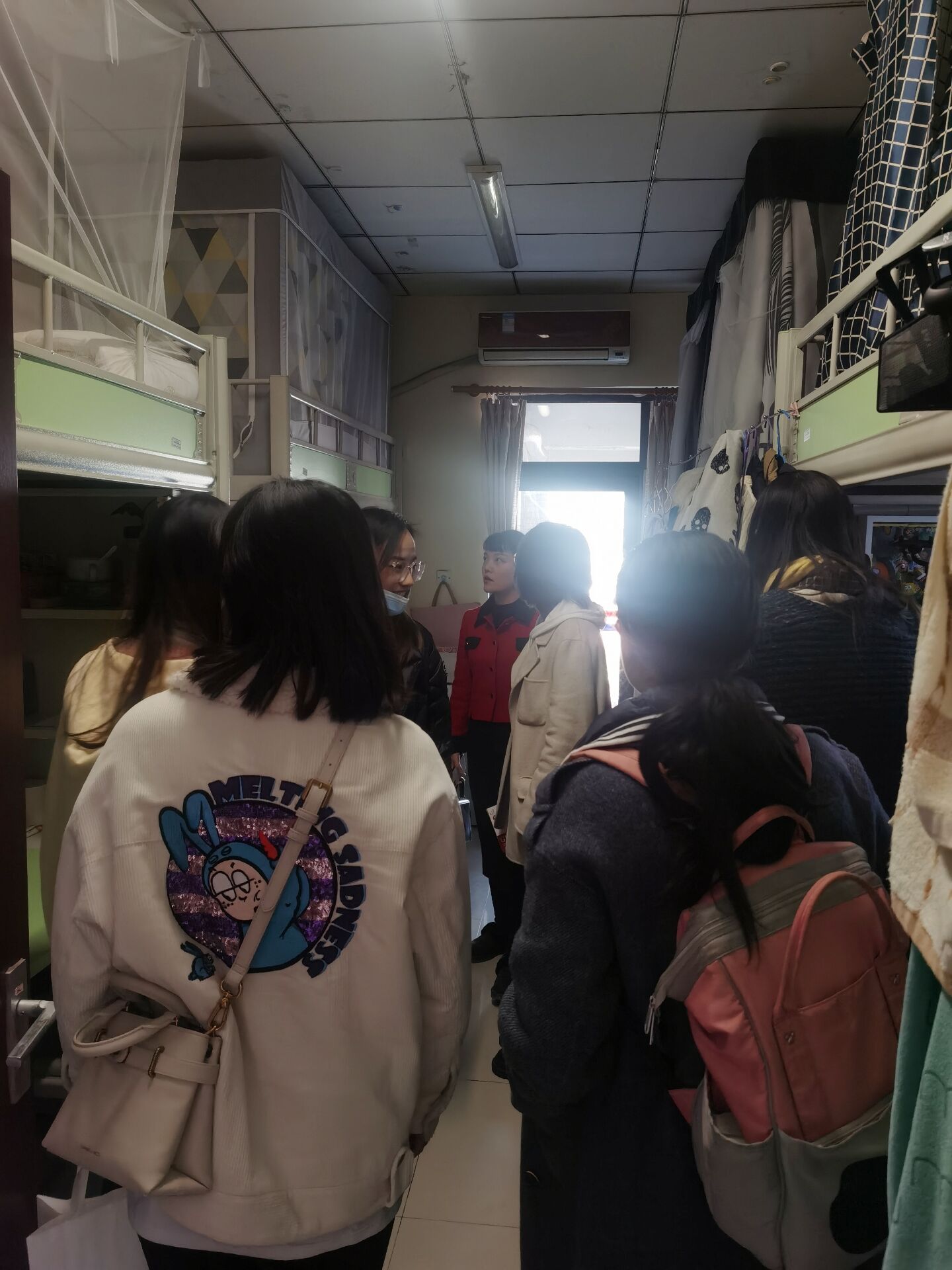 为加强学生宿舍管理,保证学生们拥有优良的学习生活环境,2021年11月25日下午,我院党委副书记余嘉、辅导员刘萱萱、高婉璐及兼职辅导员吴倩、邓成英、李昕冉前往虎溪校区松园四栋,对我院学生寝室进行了安全卫生大检查。