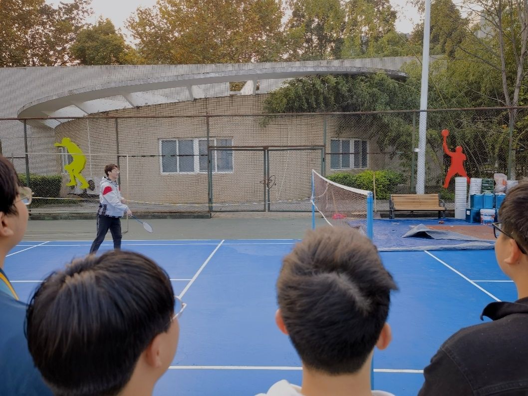 首先进行的是羽毛球交流项目,擅长羽毛球运动的王陈希同学组织对羽毛球感兴趣的同学们先组队,随后进行了一场紧张而激烈的羽毛球比赛。比赛过程中不时产生精彩的回合,围观的同学们纷纷为他们的精彩瞬间鼓掌喝彩。同时,本着友谊第一比赛第二的原则,参赛同学对于羽毛球运动进行了经验交流和相互学习。