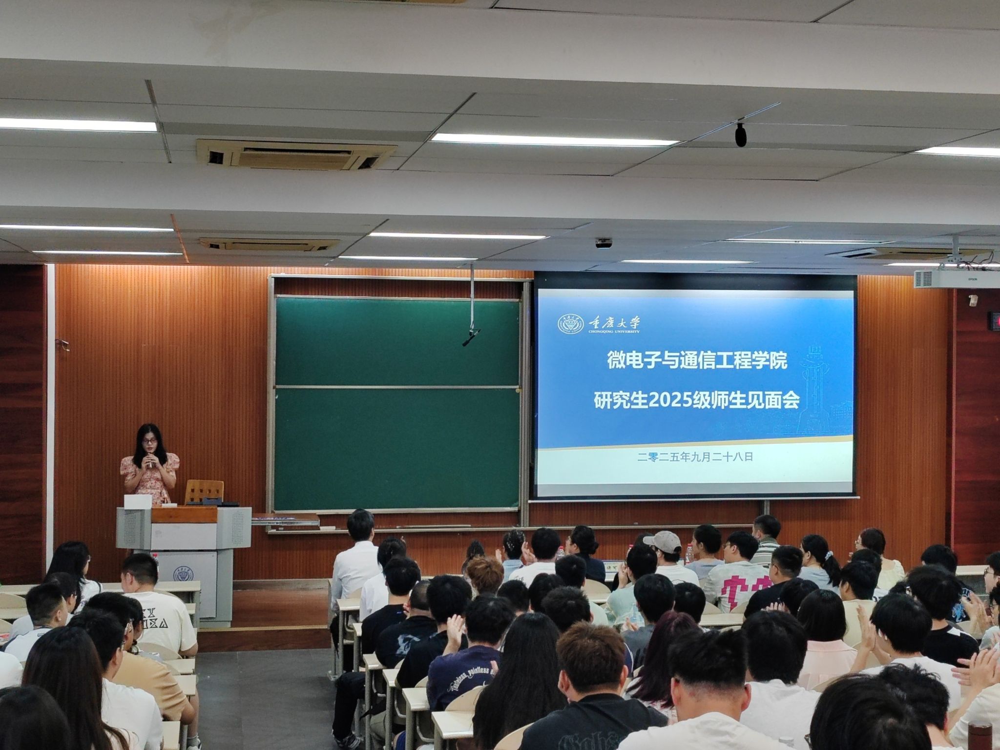 9月28日上午9点30分,微电子与通信工程学院研究生2025级师生见面会在第一教学楼1131举行。学院党委书记周喜川、副书记余嘉、副院长刘敏及教师代表出席见面会,2025级全体研究生新生参加,辅导员刘萱萱主持。