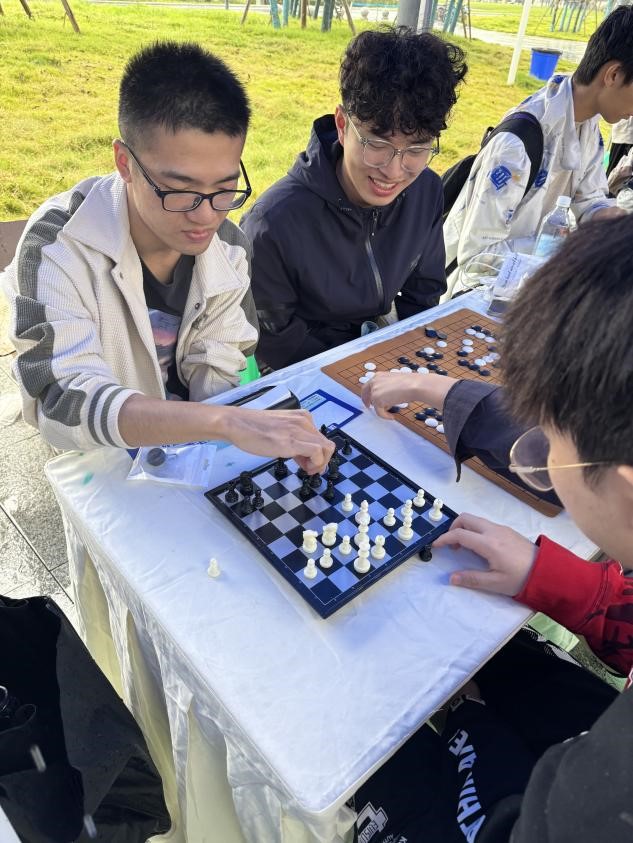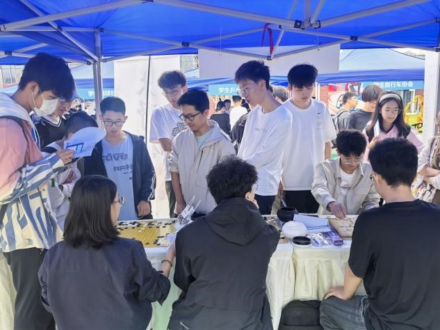 经纬棋社的成员热情洋溢地向新生们介绍各项棋类规则,而围观现场对弈的同学们或伏案,或沉浸于棋局的奥妙之中,更有同学当场报名,希望在这个“为知音启门纳贤”的平台上锻炼思维,结交好友。