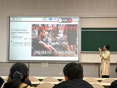 会上,余嘉副书记以“厚植家国情怀、砥砺青春之志、谨守言行之戒”为核心框架展开思政教育。通过非洲殖民历史地图、抗战史料与战争苦难影像,引导同学们深刻认识到“不是我们生在了和平年代,只是我们有一个和平的祖国”,在历史与现实的对照中厚植爱国情怀,铭记先辈牺牲与和平来之不易。