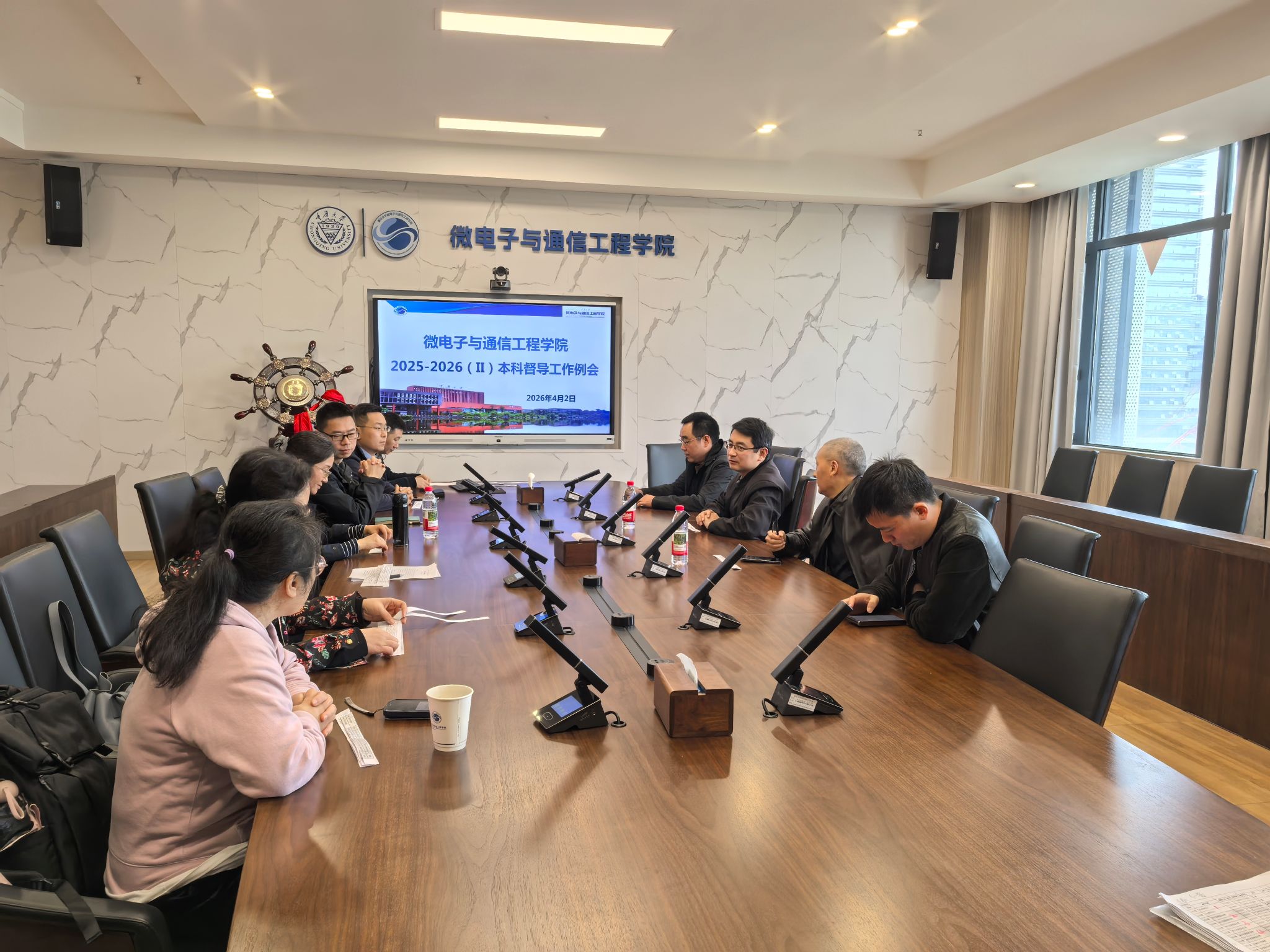2026年4月2日上午,微电子与通信工程学院在信息大楼A楼613会议室组织召开2025-2026学年第二学期本科教学督导工作例会。会议由学院督导组组长、通信工程系主任于彦涛主持,各本科专业负责人及督导组全体专家出席会议。